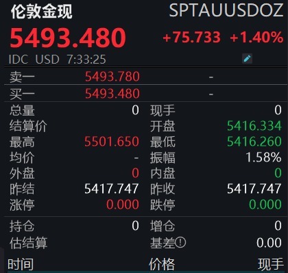 【大河财立方消息】1月29日,现货黄金首次突破5500美元/盎司,日内涨1.58%。