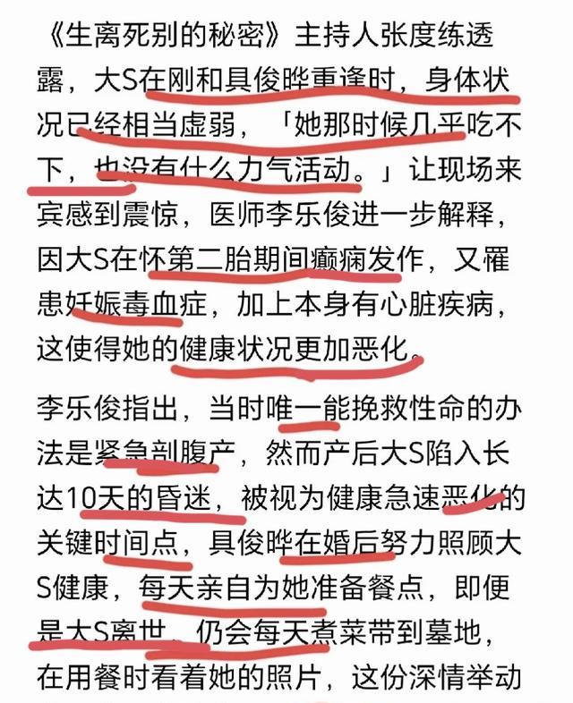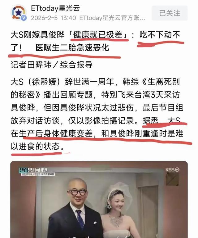 难怪,具俊晔曾在节目里说大S身体虚弱,走不了太多路,需要他把niao和喂饭,原来她的身体状况早就出了问题。