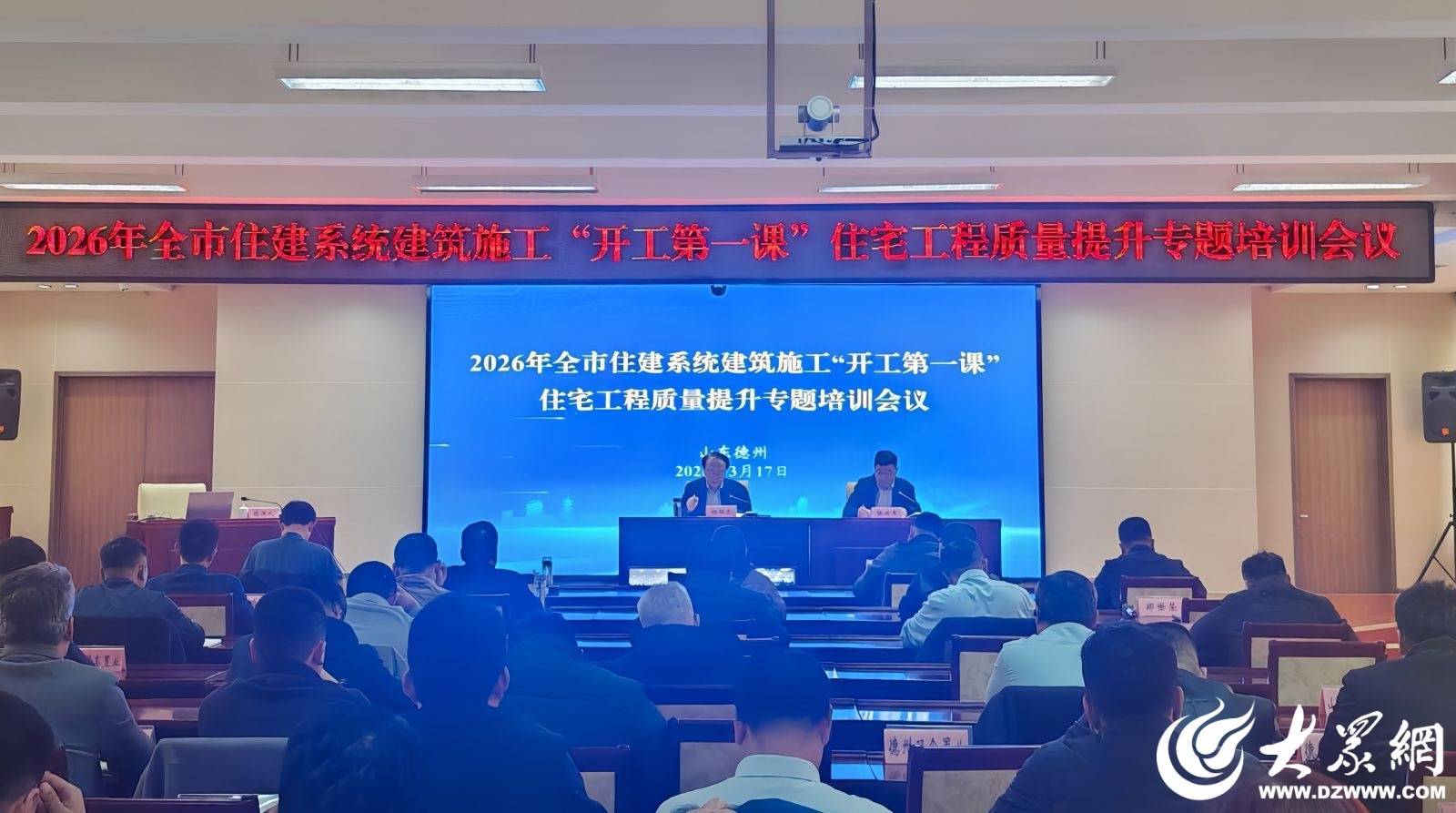 3月17日,德州市住房和城乡建设局举办全市2026年住宅工程质量提升专题培训会议。市住房城乡建设局党组成员、三级调研员杨胜志讲话,市建筑业发展促进中心主任张双军主持。