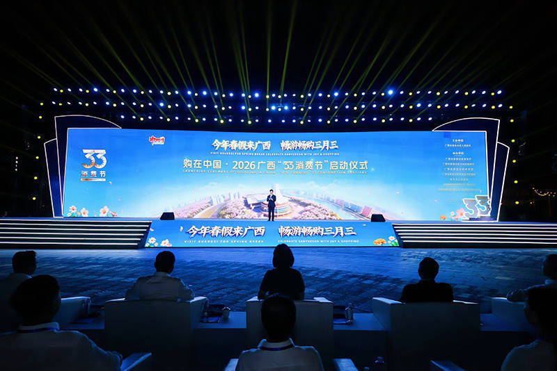 据悉,本次2026广西“33消费节”活动,精心打造了“享畅行、赏美景、观演艺、看赛事、品美食、购好物”六大板块26项特色主题超1000场次活动,推出系列沉浸式消费场景及重磅优惠,让全国游客实现“趁着春假来广西、唱着山歌游广西、寄情山水住广西、看完演出悦广西、满载而归品广西”的美好体验。